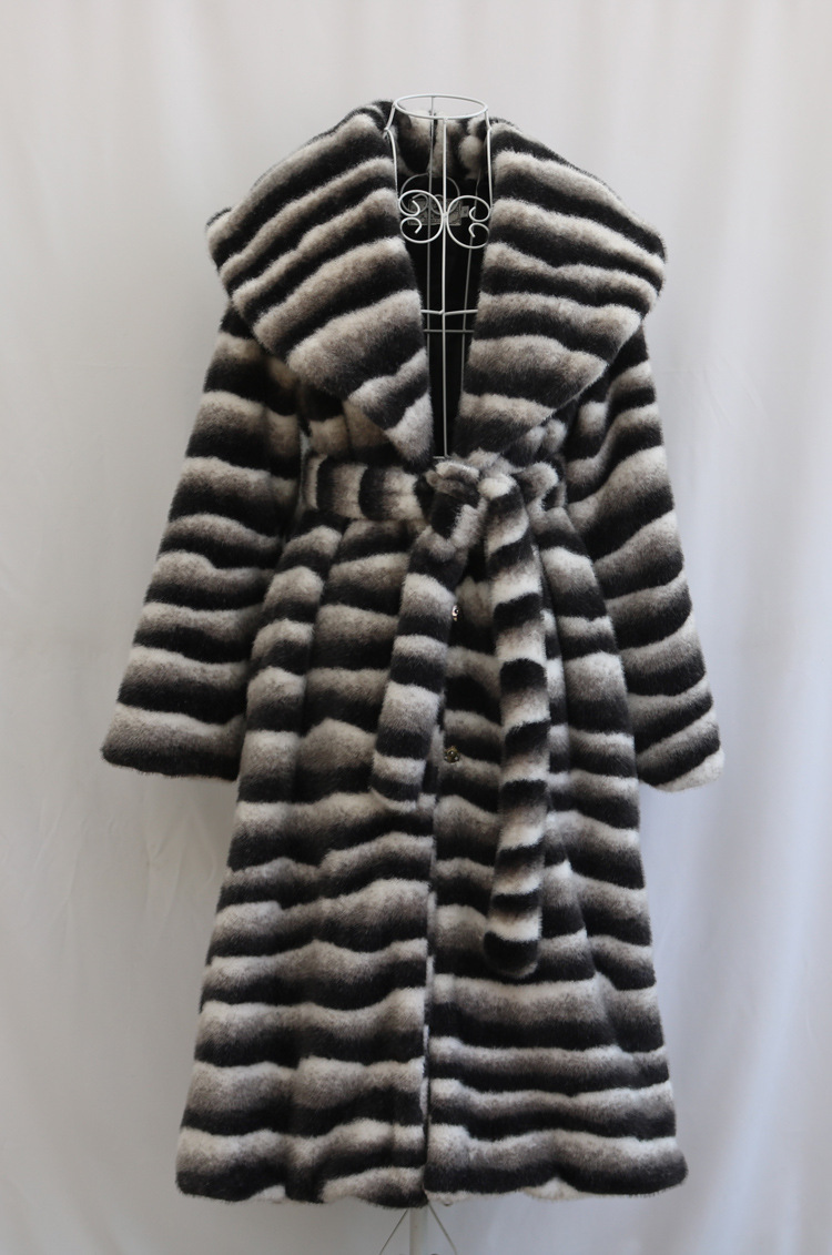 Vegan Fur Coat Mink Zebra Long Trench Coat